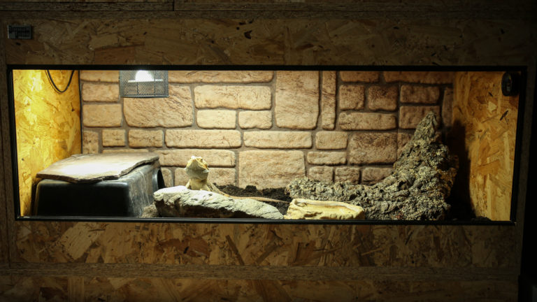 Zorg ervoor dat het terrarium op een veilige, stevige plek staat en zorg voor een slot op de deurtjes van het verblijf. Dit om te voorkomen dat kinderen (per ongeluk) het verblijf open doen en het dier kan ontsnappen. Reptielen zijn namelijk meester ontsnappers en verstoppers.